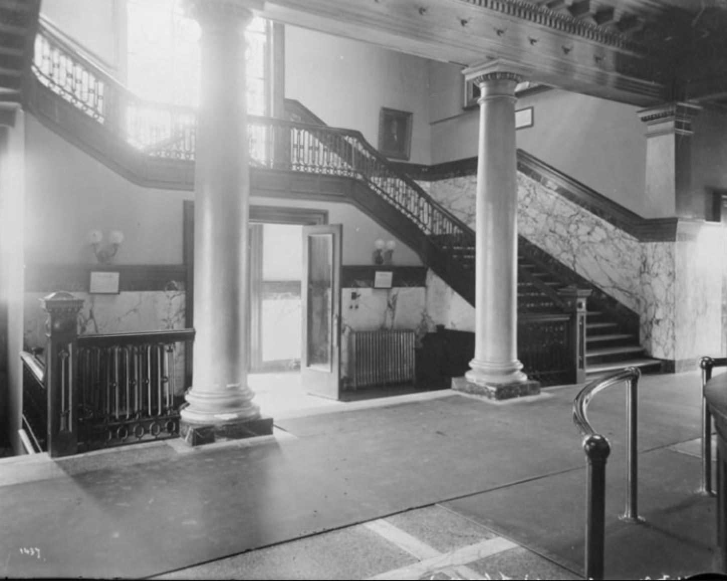 Внутренние стены здания были облицованы с помощью итальянского мрамора. Посетители ступали на красивый деревянный пол из красного дуба и с обшивкой. Перед входом висел портрет филантропа шотландского происхождения Карнеги, нарисованный мисс В. Фрешетт.