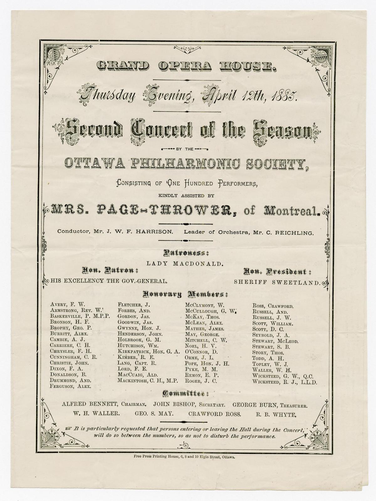 Показ даної п’єси в театрі «Grand Opera House» був «суспільною подією сезону». Місіс Ленгтрі, таким чином, повернулася знову до Оттави та місцевої опери для показу. Жителі Оттави могли придбати квитки від 0,5 – 1,5 долара. Вперше в рекламі зазначалося, що біля Оперного театру знаходитиметься транспорт, котрий відвезе відвідувачів театру додому після закінчення постановки.